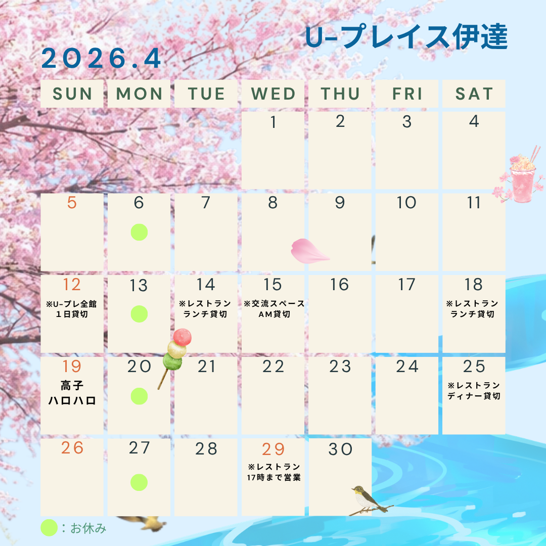 ホーム > お知らせ > 【U-プレイス伊達】4月のスケジュール